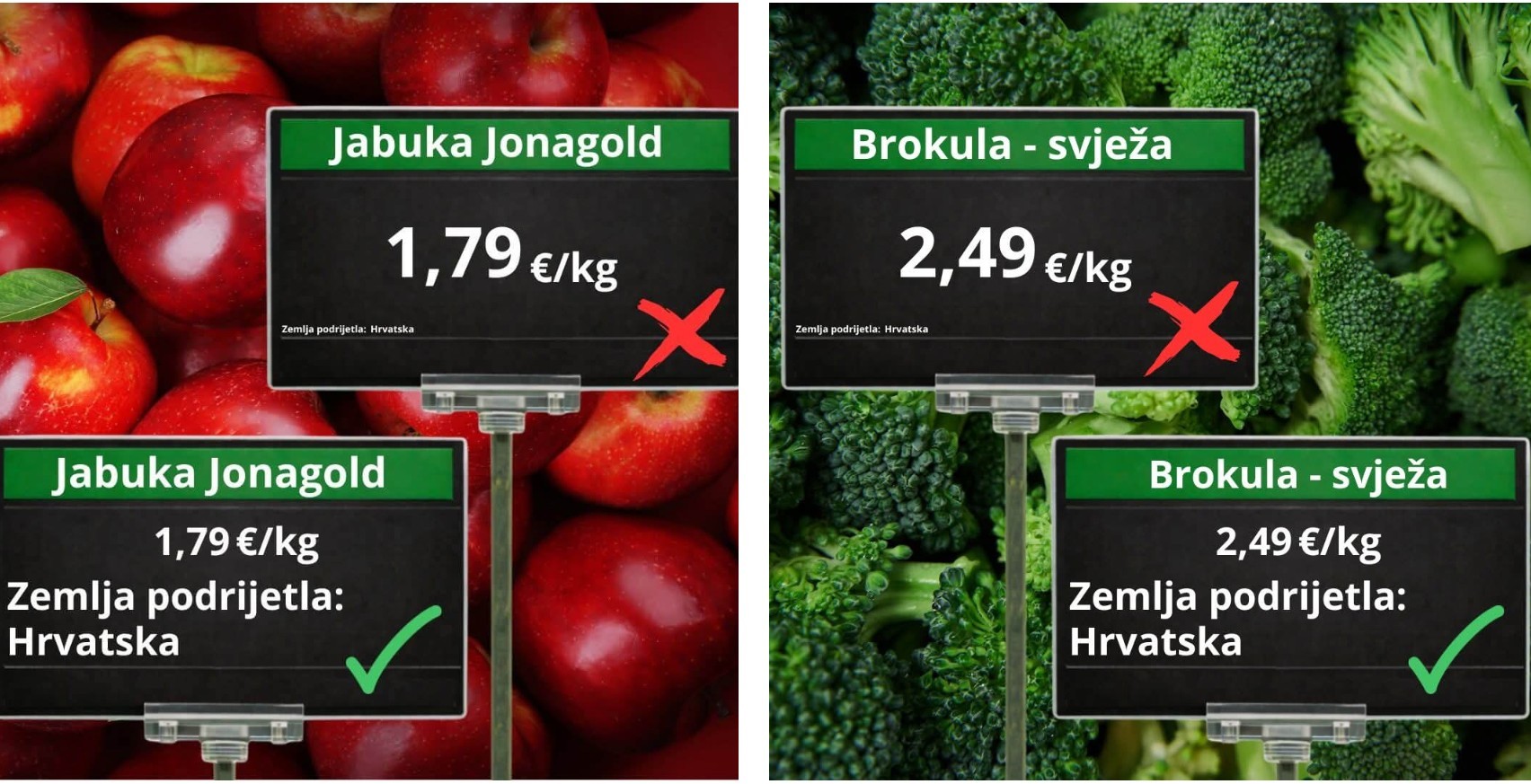 Od 01. siječnja 2026. godine u primjeni je Pravilnik o tržišnim standardima i utvrđivanju pravila o kontrolama usklađenosti s tržišnim standardima za sektor voća i povrća, određene prerađene proizvode od voća i povrća te sektor banana , koji određuje da voće i povrće koje se nalazi umaloprodaji mora imati jasno istaknutu zemlju podrijetla.